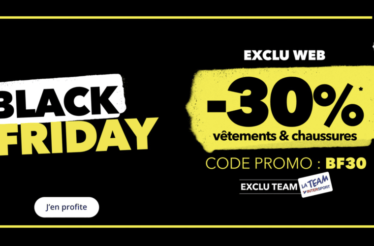 Code promo Intersport BF30 : -30% sur une séléction de vêtements et chaussures => Black Friday 2025
